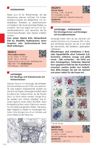 erweitern. Der Kurs eignet sich auch für Stu- Zentangle – Aufbaukurs