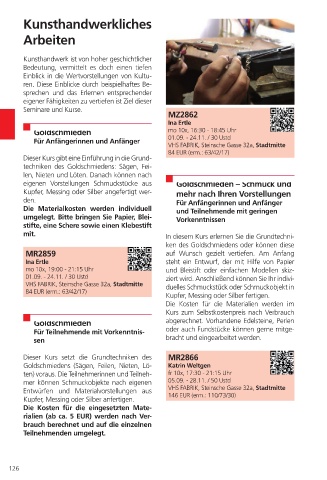 Goldschmieden mo 10x, 16:30 - 18:45 Uhr