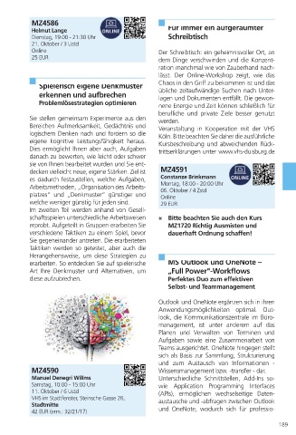 Bereichen Aufmerksamkeit, Gedächtnis und Veranstaltung in Kooperation mit der VHS