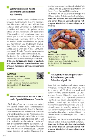 bekannte landestypische Gerichte Gambias. Kurs kombiniert theoretische Grundlagen mit