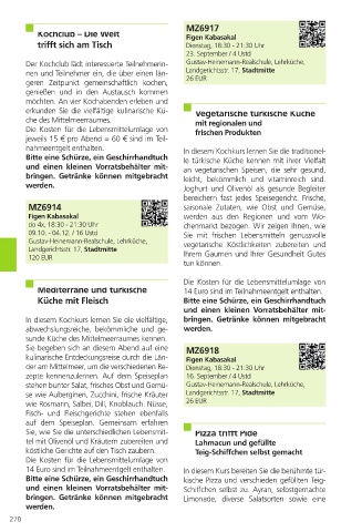 nahmeentgelt enthalten. In diesem Kochkurs lernen Sie die traditionel-