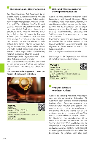 ßend werden 5 verschiedene Öle degustiert. Französische, spanische und italienische Wei-