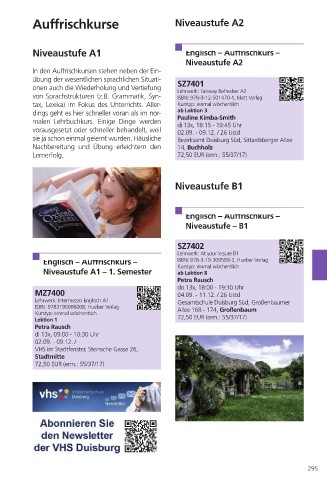 Auffrischkurse Niveaustufe A2