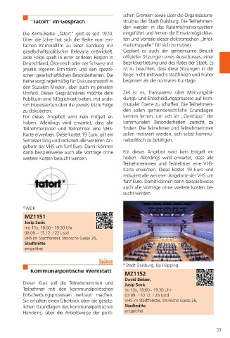 "Tatort“ im Gespräch struktur der Stadt Duisburg. Die Teilnehmen-