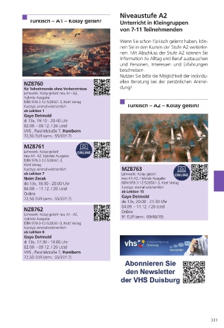 Kurstyp: einmal wöchentlich Türkisch – A2 – Kolay gelsin!