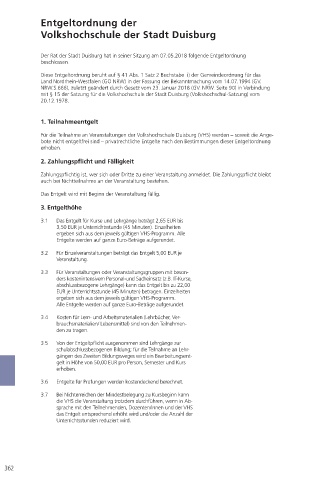 mit § 15 der Satzung für die Volkshochschule der Stadt Duisburg (Volkshochschul-Satzung) vom