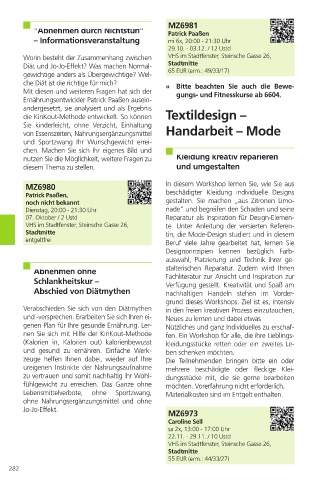 Lebensmittelverbote, ohne Sportzwang, Materialkosten sind im Entgelt enthalten.