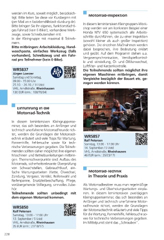 werden im Kurs, soweit möglich, berücksich- Motorrad-Inspektion
