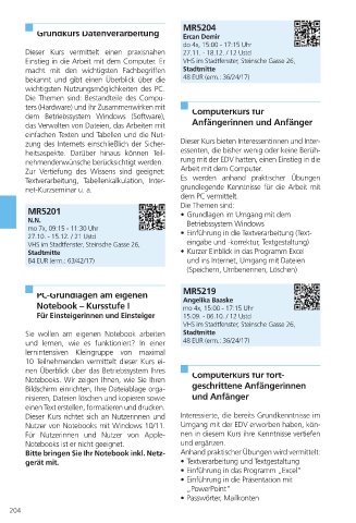 nehmendenwünsche berücksichtigt werden. rung mit der EDV hatten, einen Einstieg in die