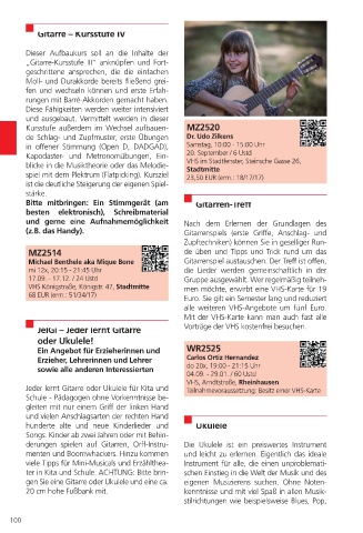 Jeder lernt Gitarre oder Ukulele für Kita und Teilnahmevoraussetzung: Besitz einer VHS-Karte