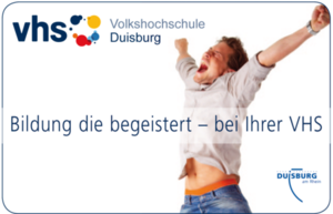 Die VHS-Karte gilt für ein Semester. Sie berechtigt zum Besuch von Vorträgen und Lesungen (mit einem Entgelt von 5 EUR) und bietet Nachlass von 5 Euro für alle anderen Veranstaltungen und Kurse der VHS Duisburg. Auf Wunsch wird das VHS-Programm per Post zugeschickt.